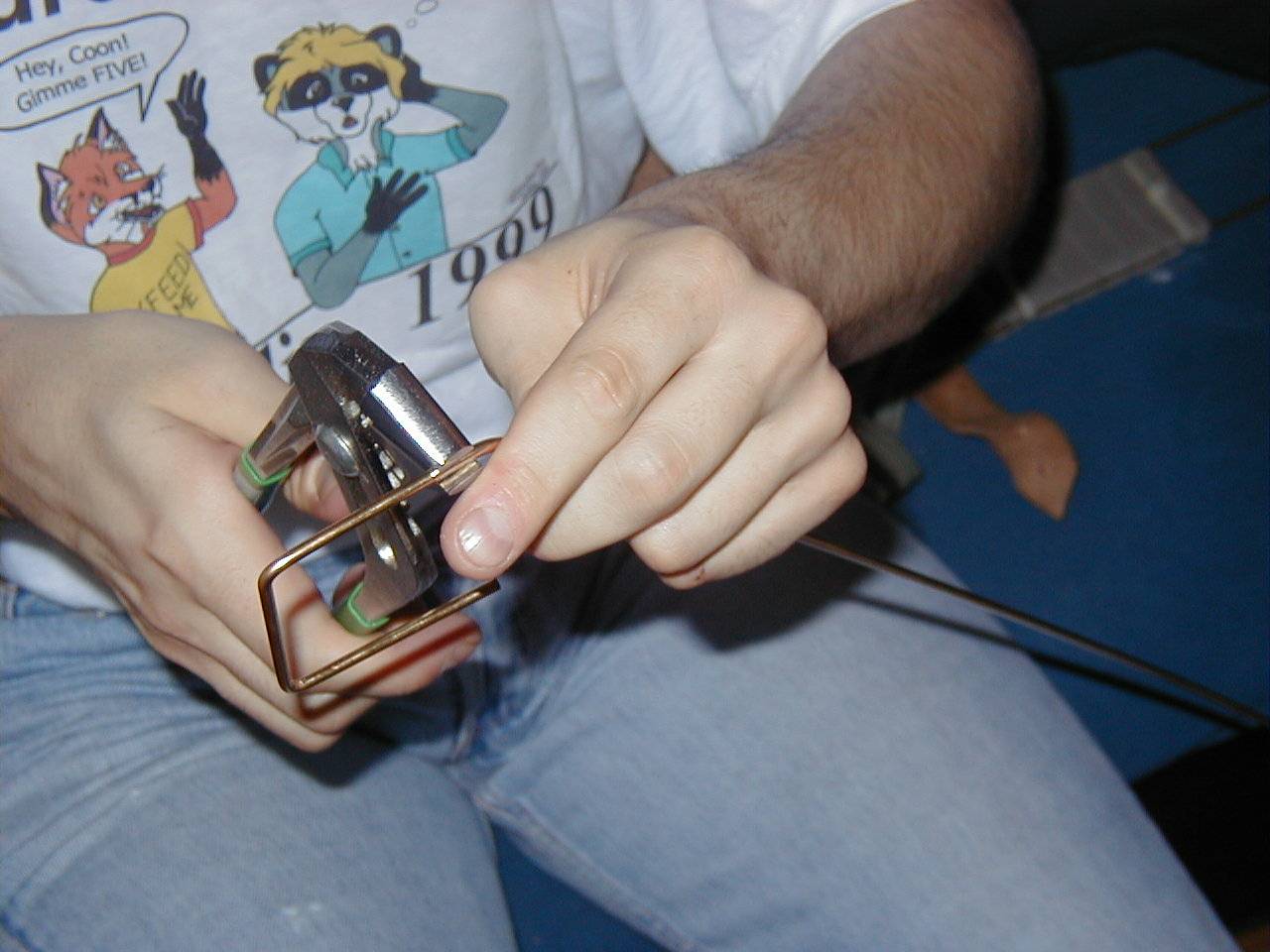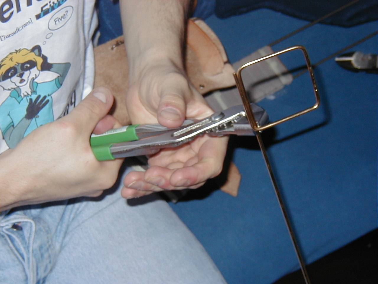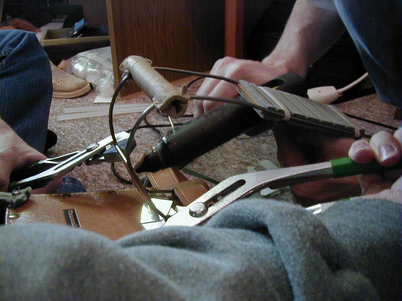 Tail Improvement Furvan suggested to take a length of thick brass wire, bend it to a square and glue it to the burdened place. That's exactly what we did. Armed with two clamps and a wire cutter we started working. The pictures above show the single steps. Below you can see how we fixed the brass wire with hot glue to the bending at the tail base and increased the stability of the construction.